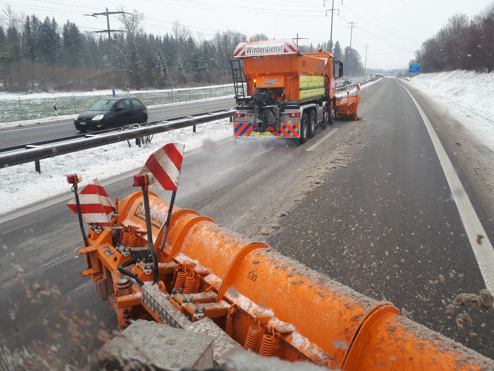 Der Winterdienst gehört zum kontinuierlichen betrieblichen Unterhalt der Nationalstrassen und soll die grösstmögliche Verkehrssicherheit auf den Strassen sowie deren optimale Nutzung gewährleisten. Die zentras sowie die beauftragten Unternehmen sorgen für den Winterdienst auf ca. 140 km Nationalstrassen (LU, ZG, NW und OW).