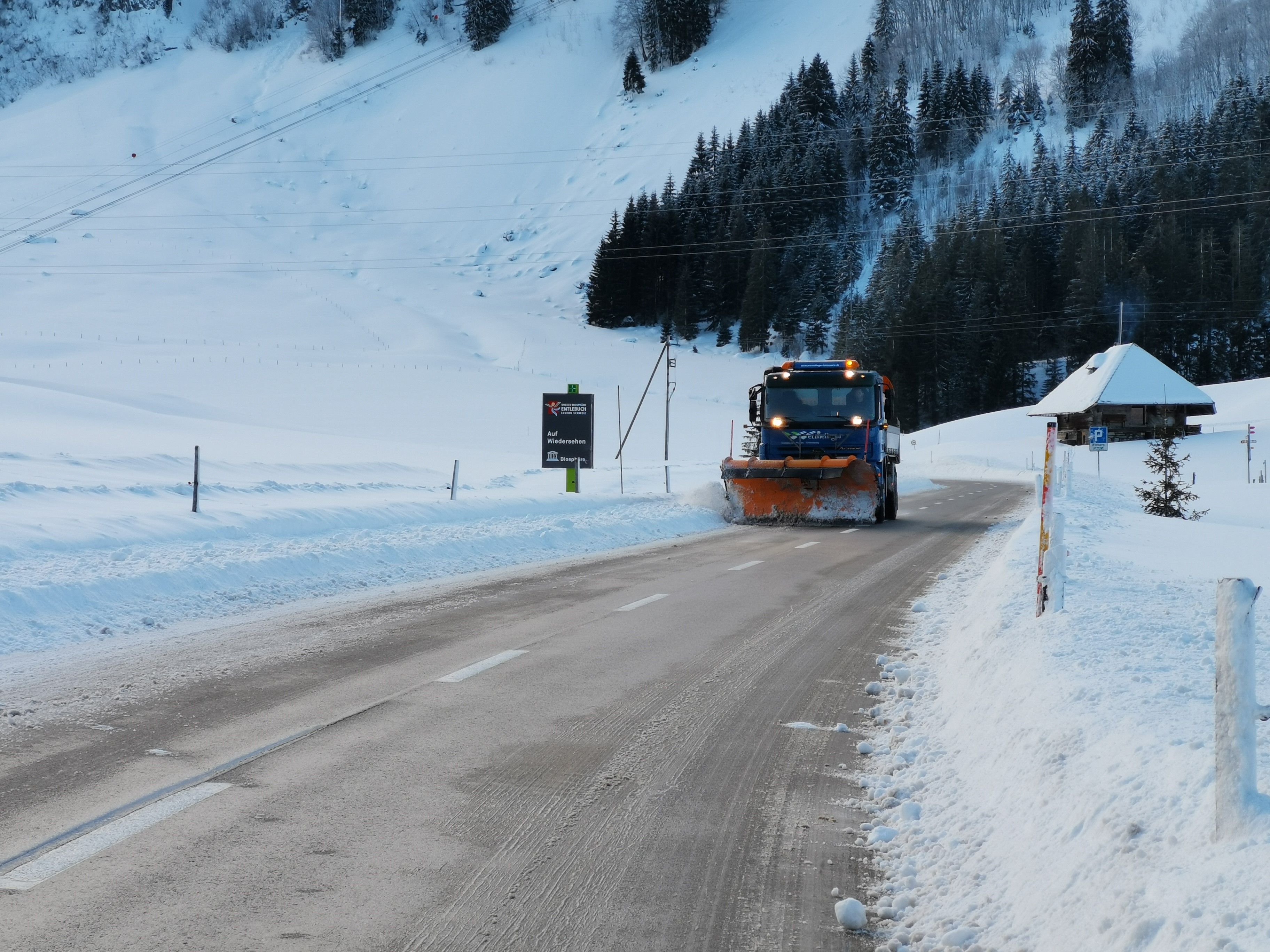 Um Schnee und Glättesituationen auf den Strassen zu verhindern, werden nebst spezifischen Prognosen der Wetterdienste auch Daten aus dem Winterdienst-Management-System (e-wims) genutzt. Diverse Wetterstationen und Messsonden (https://wetter.lu.ch) liefern permanent Daten an das e-wims. Dieses System unterstützt die Winterdienstleitung bei der Aufgabe, für optimale Verkehrsverhältnisse auf den Strassen zu sorgen. Das e-wims bietet dazu folgende Funktionalitäten: